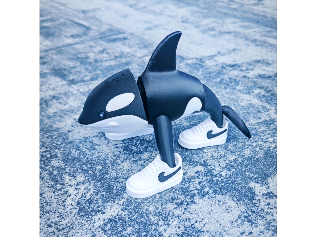 Tralalero Tralala? Ne, ne, ne.“ – představuje se Orcalero Orcala, orka v bílých Nike teniskách, která na pláži dělá splash, boom a ah.